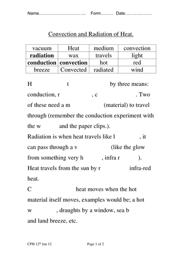 Conduction Convection Radiation Worksheet Answers : Examples Of Conduction Convection And Radiation Modes Of Heat Transfer Videos - A simple set of worksheets comprising of questions on heat transfer.